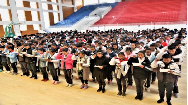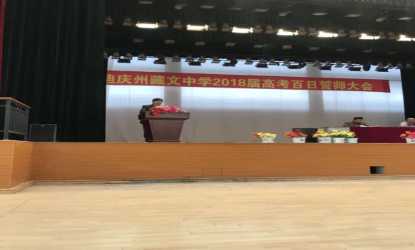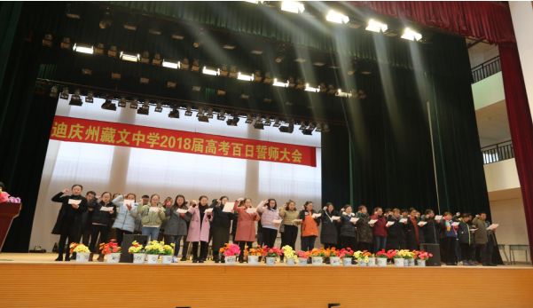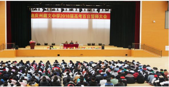 2018年3月6日上午10点30分州藏文中学在学校体育馆为高三毕业生举行“迪庆州藏文中学2018届高考百日誓师大会”;会上州藏文中学校校长、副校长、高三年级教师及高三学生代表做了激情澎湃、深入人心的讲话。