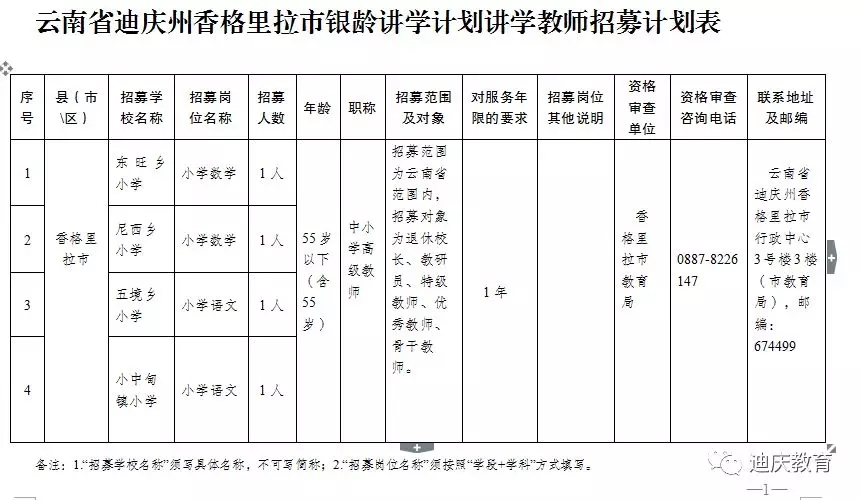 二、德钦县2018年银龄讲学计划公开招募公告