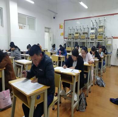 此次考试,从考场组织到考试流程完全按照高考的要求进行,严肃有致。整个考试过程中,各位教师认真对待,一丝不苟,专心思考,笔走龙蛇。考场内一片寂静,只有教师们做题时钢笔的沙沙声。冯局长带领着巡考领导,一直守候在考场外,给参加考试的教师们带来了温暖与安慰。