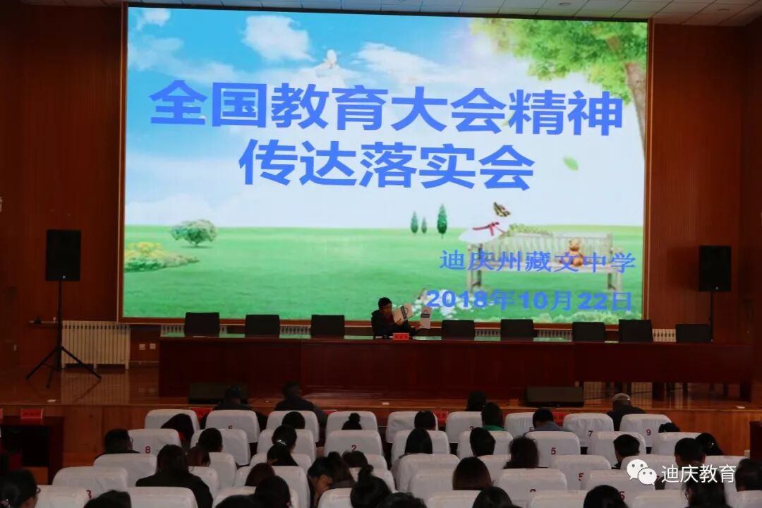 2018年10月22日中午13时,州藏文中学在学校报告厅召开了全校教师大会,会议由戴建文校长主持,共计203位教师参加会议。会上戴建文校长认真传达了全国教育大会精神。