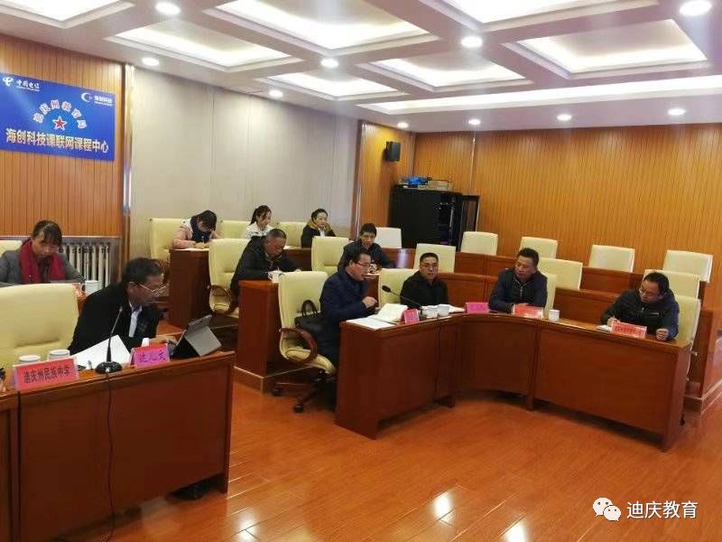 2018年11月20日上午迪庆州教育系统召开教育精准扶贫近期工作部署视频会议。州教育局副处级以上领导、州纪委驻州教育局纪检组组长、州教育局相关科室负责人、州直各学校校长等在迪庆州青少年活动中心三楼视频会议主会场参会,各县市教育局局长、副局长,各学校校长、副校长暨相关人员在各县市教育局、中心校分会场参会。会议由达儿文副局长主持。