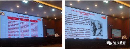 首先杨绕才老师用“承传统,感党恩;知党恩,感党恩;学典型,感党恩;感党恩,跟党走”四个主题贯穿全部宣讲活动,引导全场干部职工理解听党话、感党恩、跟党走的深刻含义,并以此来严格要求自己。宣讲中,杨绕才老师以迪庆州中华人民共和国成立以来鲜活、感人的一个个事例为在场的所有人诠释了什么是理想信念,什么是责任与担当。