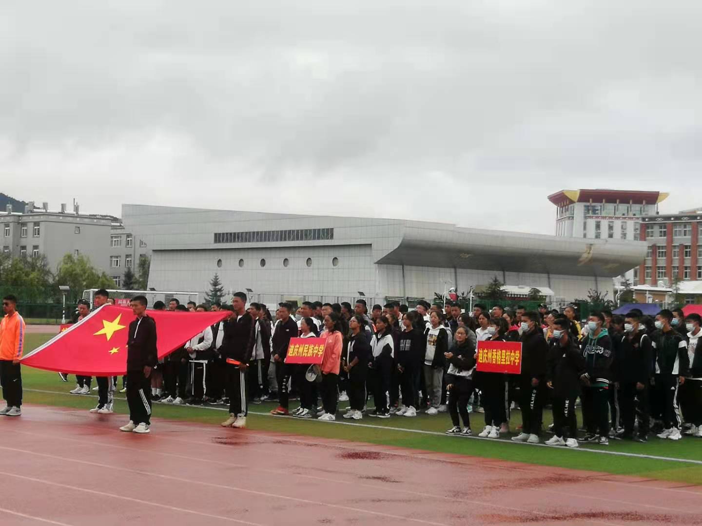 开幕式由迪庆州民族中学副校长尼玛丁争主持,在全体与会人员齐唱国歌中拉开了序幕。
