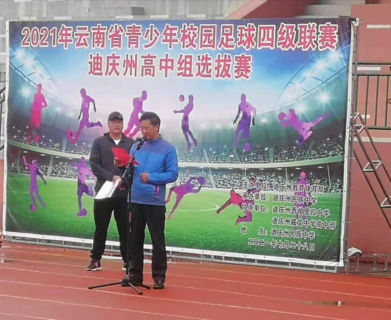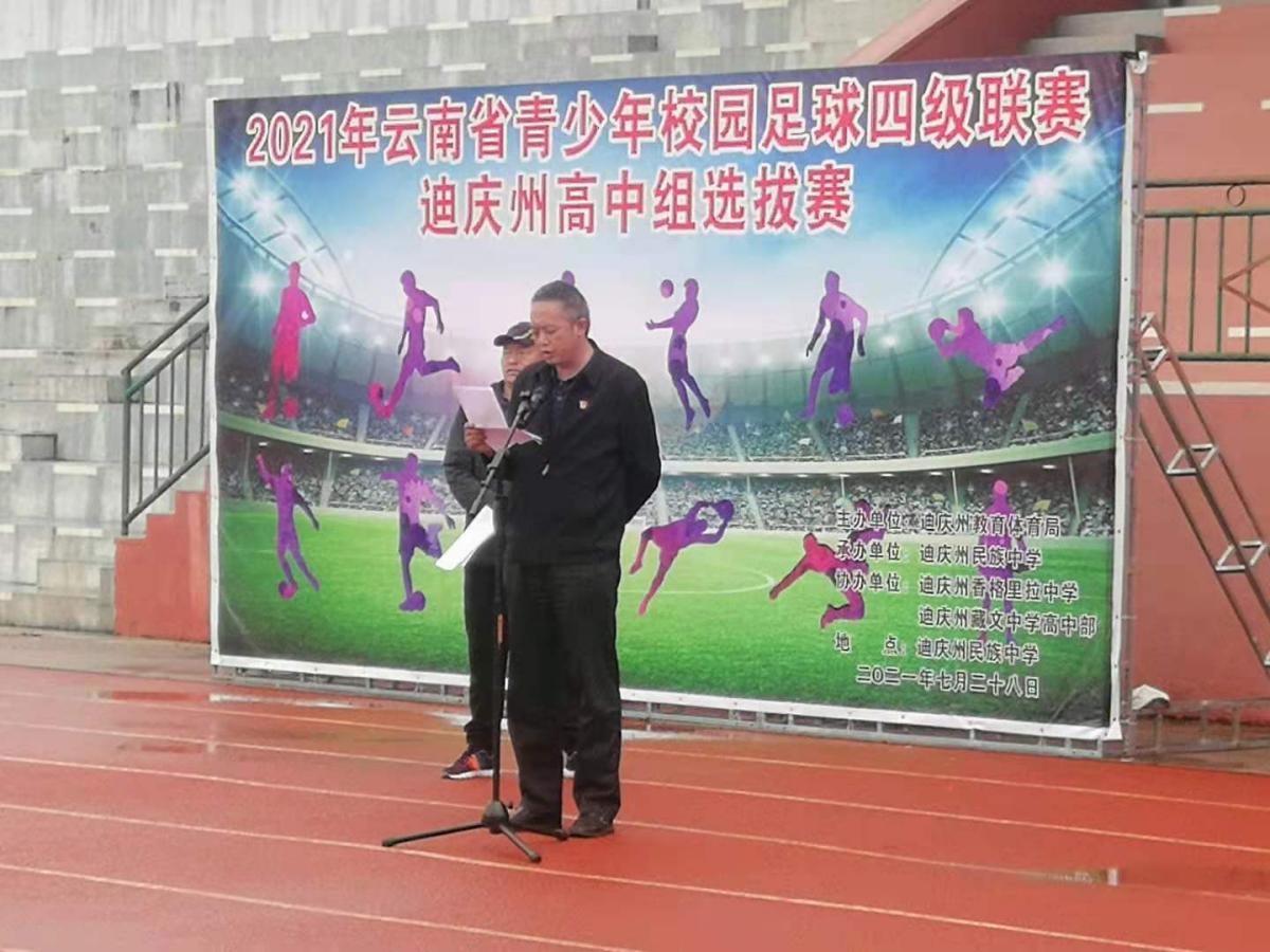 为深入贯彻全国青少年校园足球工作会议精神,提高校园足球运动水平,推动学校足球运动发展,促进学生健康成长,2021年7月28日,由迪庆州教育体育局主办,迪庆州民族中学承办的2021年云南省青少年足球四级联赛迪庆州高中组选拔赛在迪庆州民族中学足球场正式开幕。
