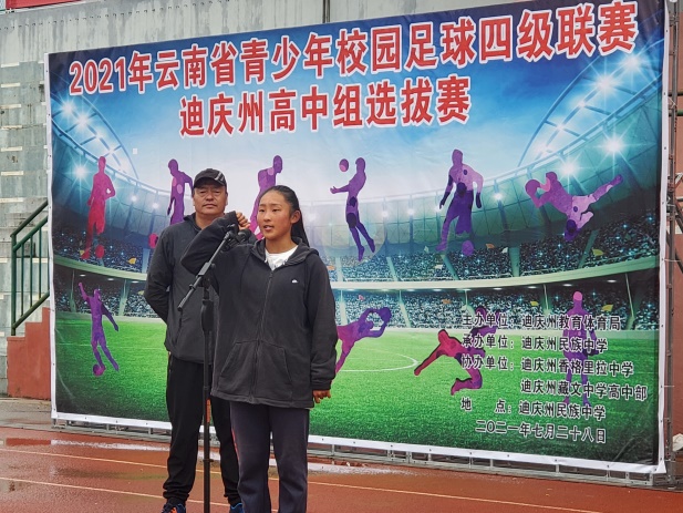 最后,迪庆州教育体育局副局长孙建忠同志宣布云南省校园足球四级联赛迪庆州高中组选拔赛开幕。