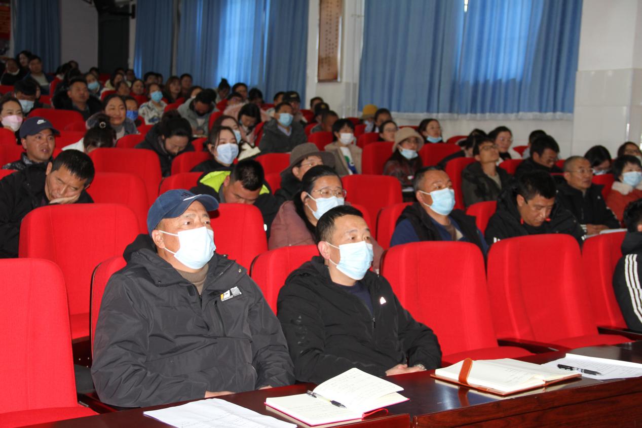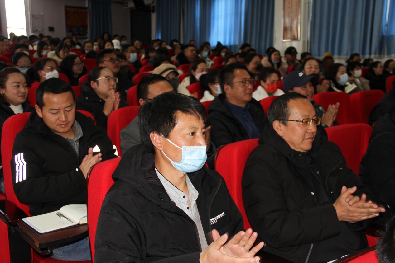 副校长尼玛丁争、李跃昆以及全校教职工参加,学校党群办主任唐学文主持。
