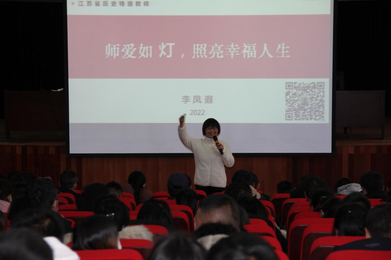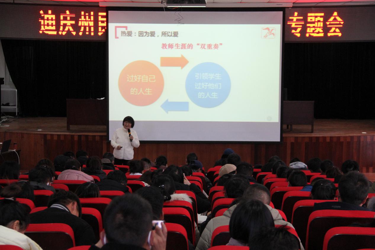 2月18日下午,迪庆州民族中学南校区北报告厅座无虚席,全体教职员工齐聚报告厅听取我校特邀的全国知名班主任,江苏省特级教师、江苏省第一届十佳师德模范、江苏省五一劳动奖章获得者、江苏省优秀班主任、江苏省师德模范、徐州市家长心目中的十佳教师李凤遐《师爱如灯,照亮幸福人生》的师德师风专题教育大会。