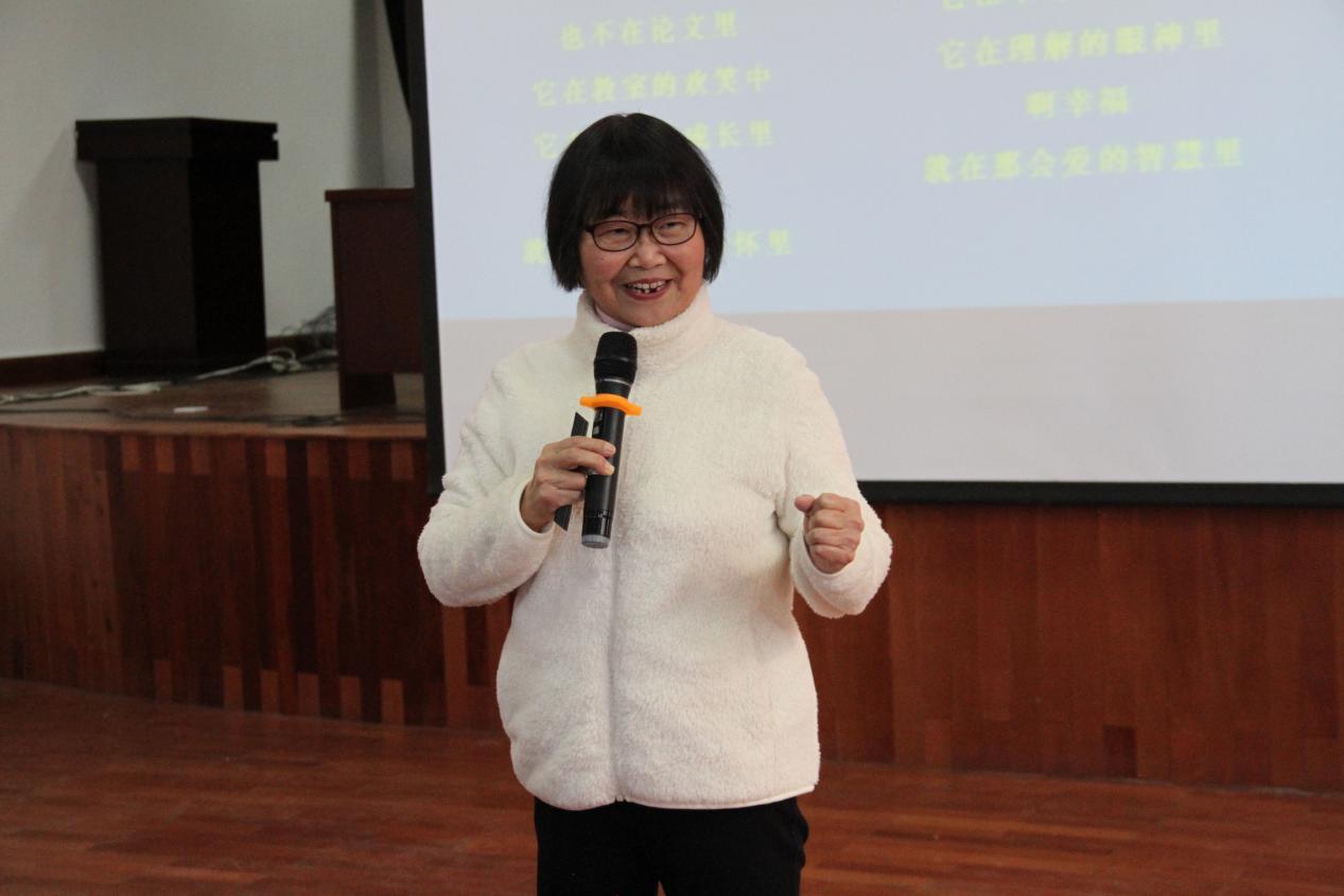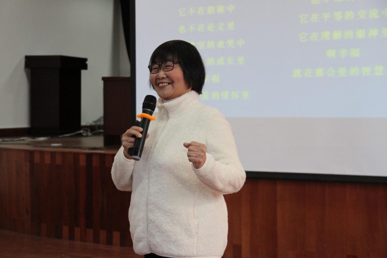 随后,李老师以自己的一次骨折经历谈起,讲述了浓浓的师生情谊,并分享了她在为老师期间的“幸福故事”。
