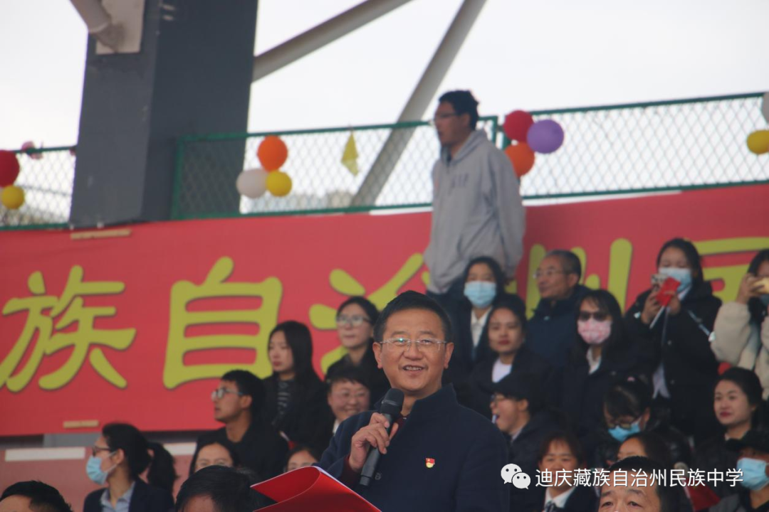 本届运动会的举办,是学校全面贯彻党的教育方针,落实“立德树人”根本任务,落实教育部提出的加强中小学生“体质管理”的重要体现。为加强学校体育工作,坚持“健康第一”的教育理念,推动青少年文化学习和体育锻炼协调发展,传承北京双奥精神,铸牢中华民族共同体意识,培养德智体美劳全面发展的社会主义建设者和接班人,以高水平、特色化田径运动会喜迎党的二十大,4月27日下午,迪庆州民族中学第三十七届田径运动会隆重开幕,高一、高二2000余名师生齐聚运动场,共享一年一度的体育盛会。