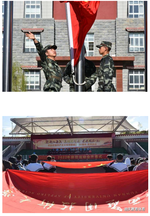 5月11日,云南民族大学香格里拉职业技术学院第十届、滇西应用技术大学迪庆学院第二届、迪庆藏族自治州民族中等专业学校第十八届田径运动会在学校田径运动场隆重开幕,以“会议已召开,请慎用喜迎、迎接 永远跟党走 奋进新征程”“热烈庆祝中国共产主义青年团成立100周年”为主题,为迎接中国共产党第二十次全国代表大会的顺利召开添砖加瓦,为庆祝中国共产主义青年团成立100周年献礼。