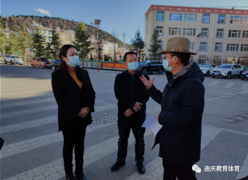 当前,我州疫情防控面临复杂性、艰巨性的严峻形势,为深入贯彻州委州政府和迪庆州教育体育局的部署安排,进一步加强学校疫情防控相关工作,2022年11月30日,迪庆州人民政府副州长余桂芬、副秘书长林维平,迪庆州教体局局长李涛、竞训科科长刘鹿一行深入校园疫情防控一线,实地了解疫情防控落实情况。余桂芬副州长一行查看州香格里拉中学学校疫情防控措施落实情况,并慰问坚守岗位的全体师生员工,听取校党委书记张志云同志情况汇报。