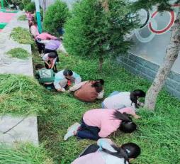 学校一直很重视校园环境绿化美化工作,一直以 来致力于把学校打造成树绿草青花艳的美丽校园,给 孩子们营造一个美丽舒适的学习环境。每个学期开展 “ 美丽校园你我他 ,绿化美化靠大家 ”系列活动 ,学 校及时组织师生和相关人员对草坪、花坛的杂草进行 清理 ,对树枝进行修剪 。 学校还通过国旗下的讲话、 主题班会 、板报 、红领巾广播站等多种形式 ,对学生