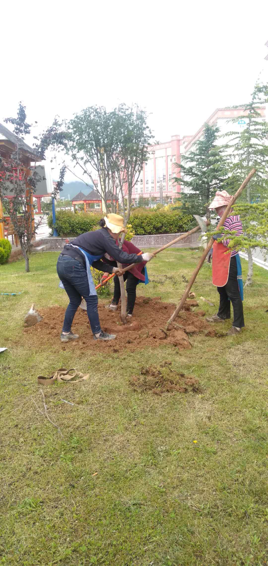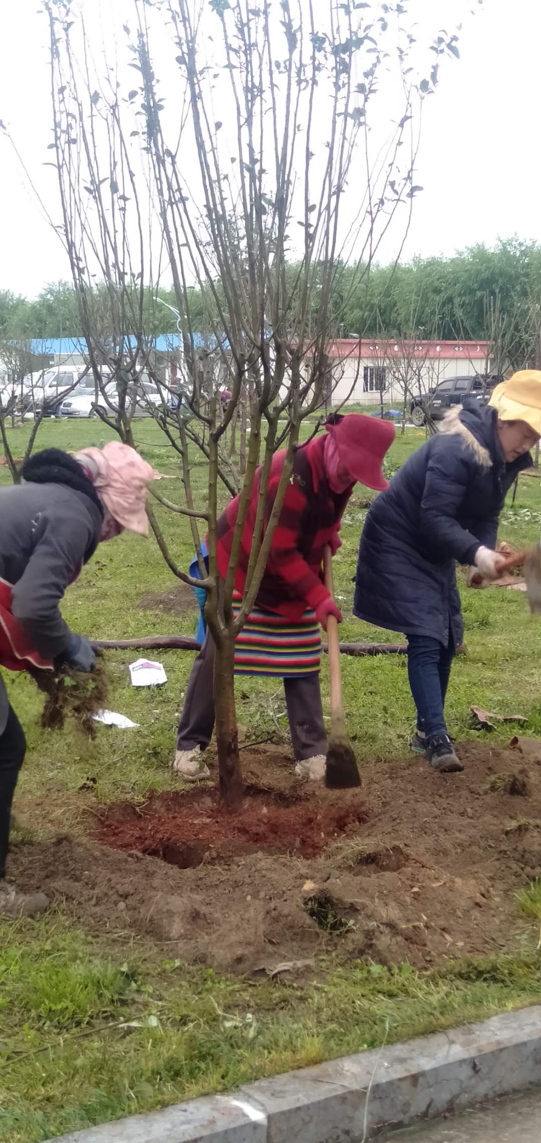 图为栽种学校引进的树种