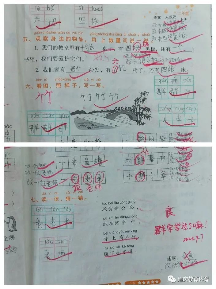 二年级包国惠老师的《同步指导》常规作业,她注重低年级学生的书写格式,利用田字格印章,订正作业、查缺补漏,引起孩子的好奇心和学习积极性。大大提高了作业的整洁度。