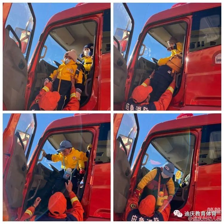 “消防员叔叔,我好想去消防车里坐一坐,您能让我去看看车里的秘密吗?”
