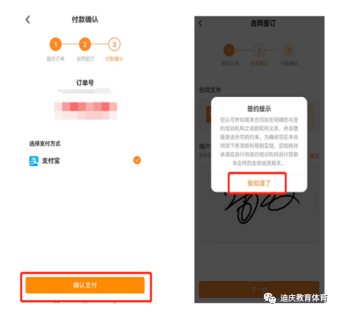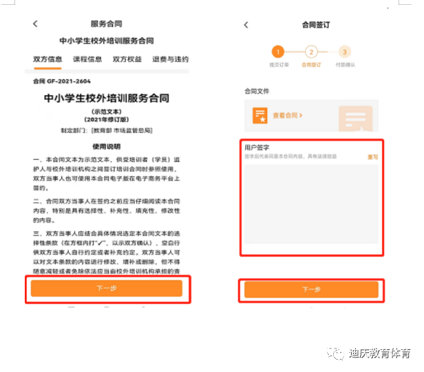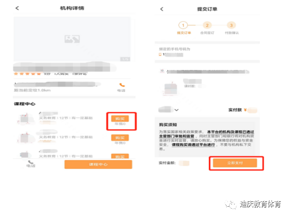 4.购买课程点击相应的机构,选择合适的课程点击“购买”,选择“立即支付”,签订合同,确定付款。