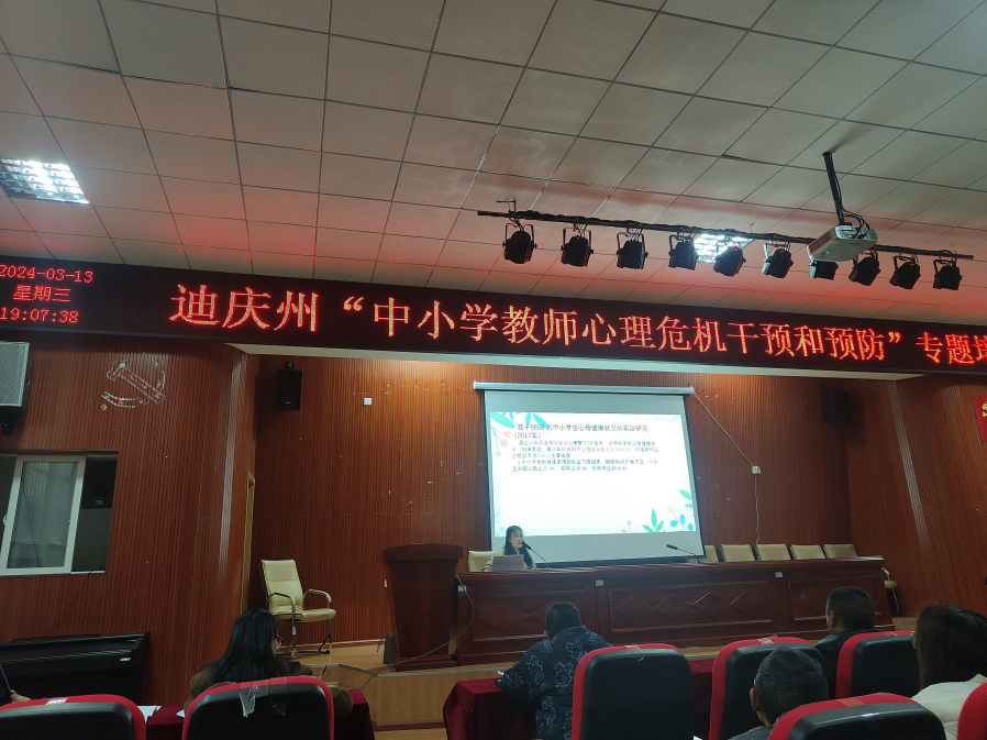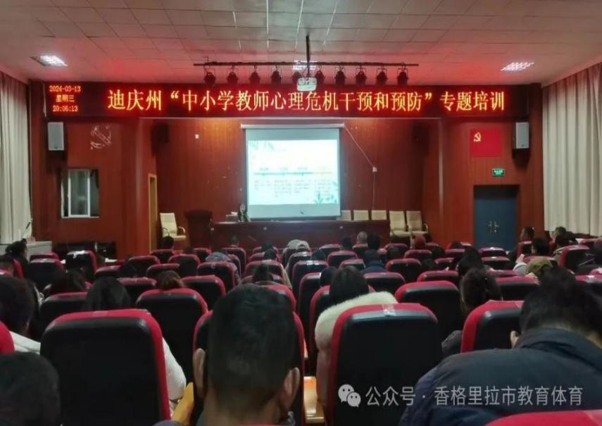 为深入贯彻落实党的二十大精神,全面落实立德树人根本任务,按照教育部等十七部门印发的《全面加强和改进新时代学生心理健康工作专项行动计划(2023-2025年)》及云南省委办公厅、省政府办公厅印发的《全面加强和改进新时代学生心理健康工作专项行动实施方案》的要求,切实加强学校心理危机预防体系建设,精准提高学校教师主动应对学生心理危机能力,切实预防、及时处理校园突发的心理危机事件,维护校园稳定安全,促进学生阳光健康成长。2024年3月12日--13日晚上七点,由迪庆州教育体育局、香格里拉市教育体育局共同组织开展“中小学教师心理危机干预和预防”专题讲座。