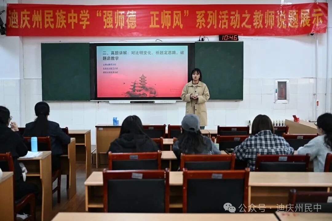 秋日的香格里拉天高云淡,迪庆州民族中学鼎兴楼南报告厅内气氛热烈。9月15日至24日,学校以“精准析题·明向引教”为主题,分层推进首届教师说题示范活动。高考9个学科的教师们齐聚一堂,以别开生面的形式共同探寻2025年新高考命题趋势。本次活动旨在帮助教师深度把握2025年云南省新高考及自主命题方向,提升备考指导能力,全校高考科目任课教师全程参与,掀起一股研究高考、备战高考的教研热潮。