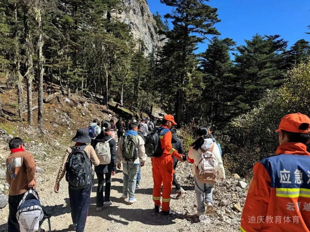 在中段路程中,自然导师穿插讲述普达措的生态保护故事,让“绿水青山就是金山银山”的理念深入人心。午餐时分,师生们在属都岗牧场用餐后自觉清理垃圾,践行“无痕徒步”。消防员组织的安全知识有奖问答,让同学们在轻松氛围中巩固了应急技能。