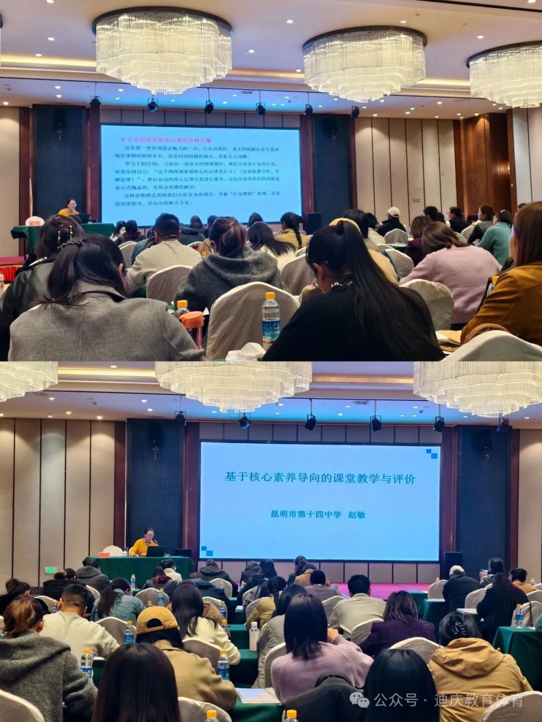 随后,昆明市第十四中学赵敏老师作了题为“核心素养导向的课堂教学与评价”的专题讲座,系统阐释了核心素养的内涵与教学转化路径,引导教师从“以教为主”向“以学为主”转变,并分享了驱动性问题设计、情境化教学、结构化协作等实用策略。