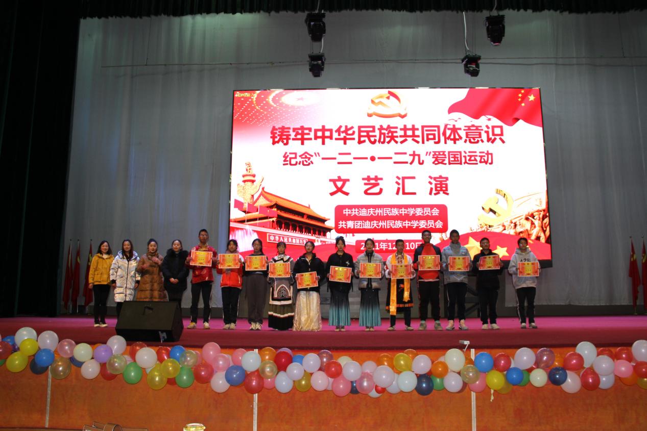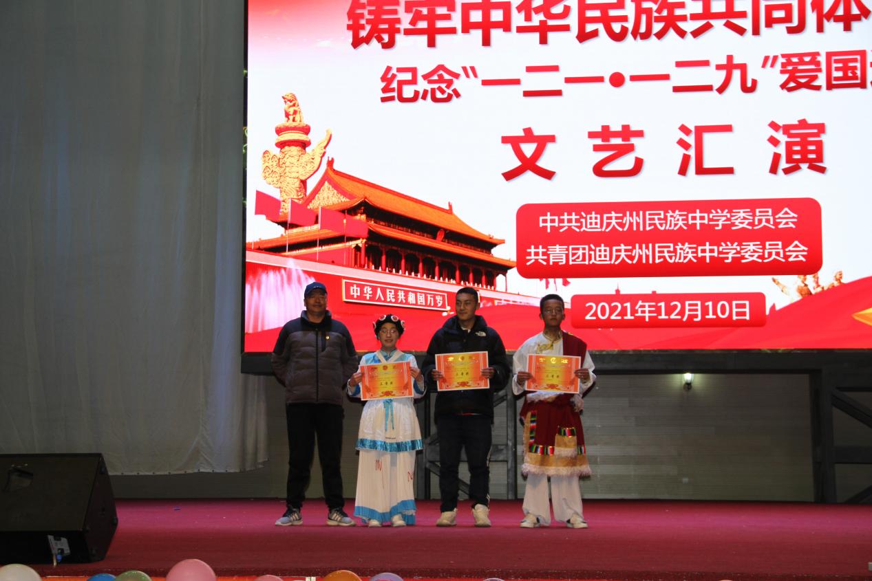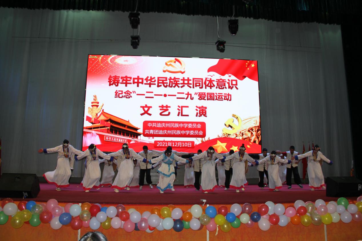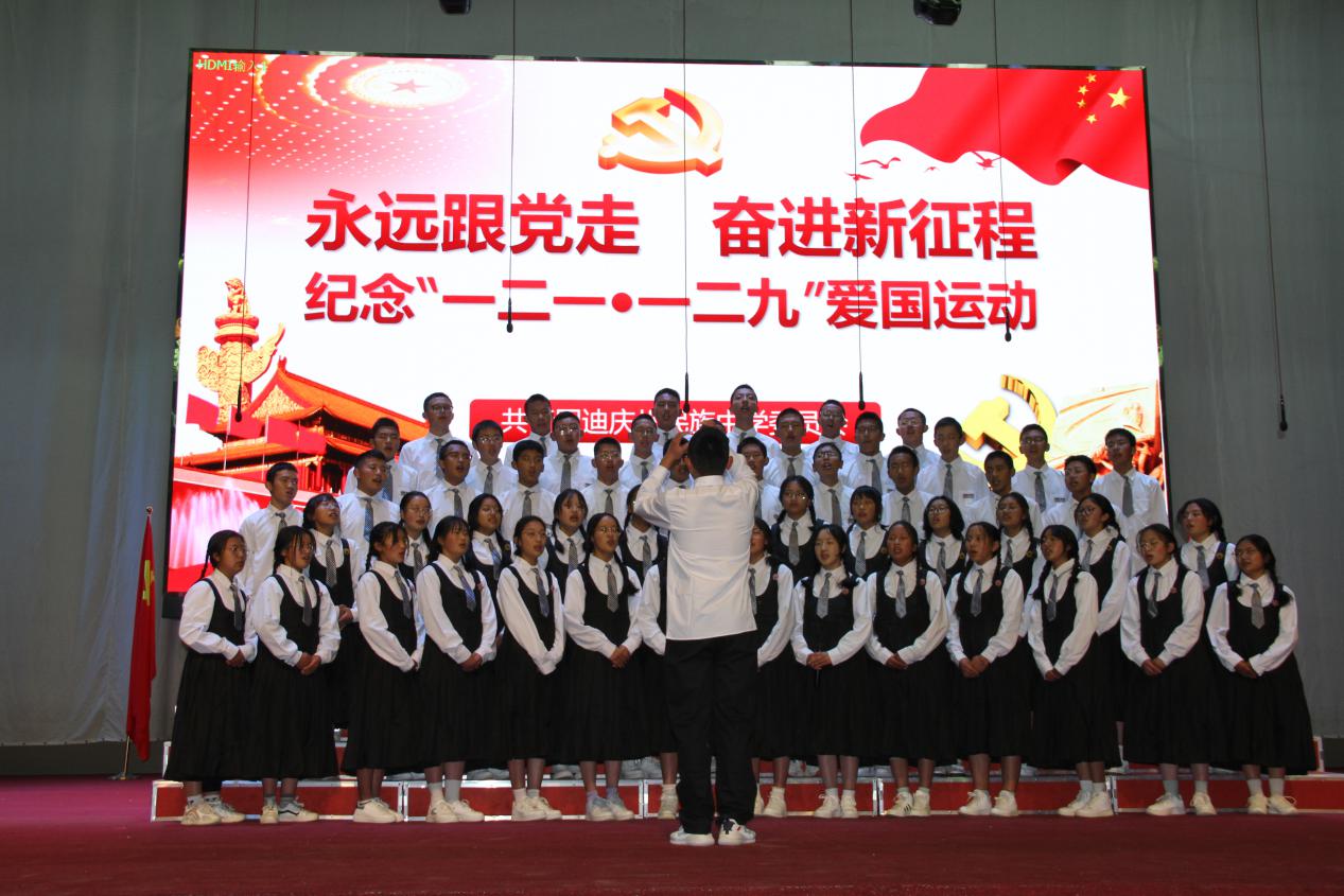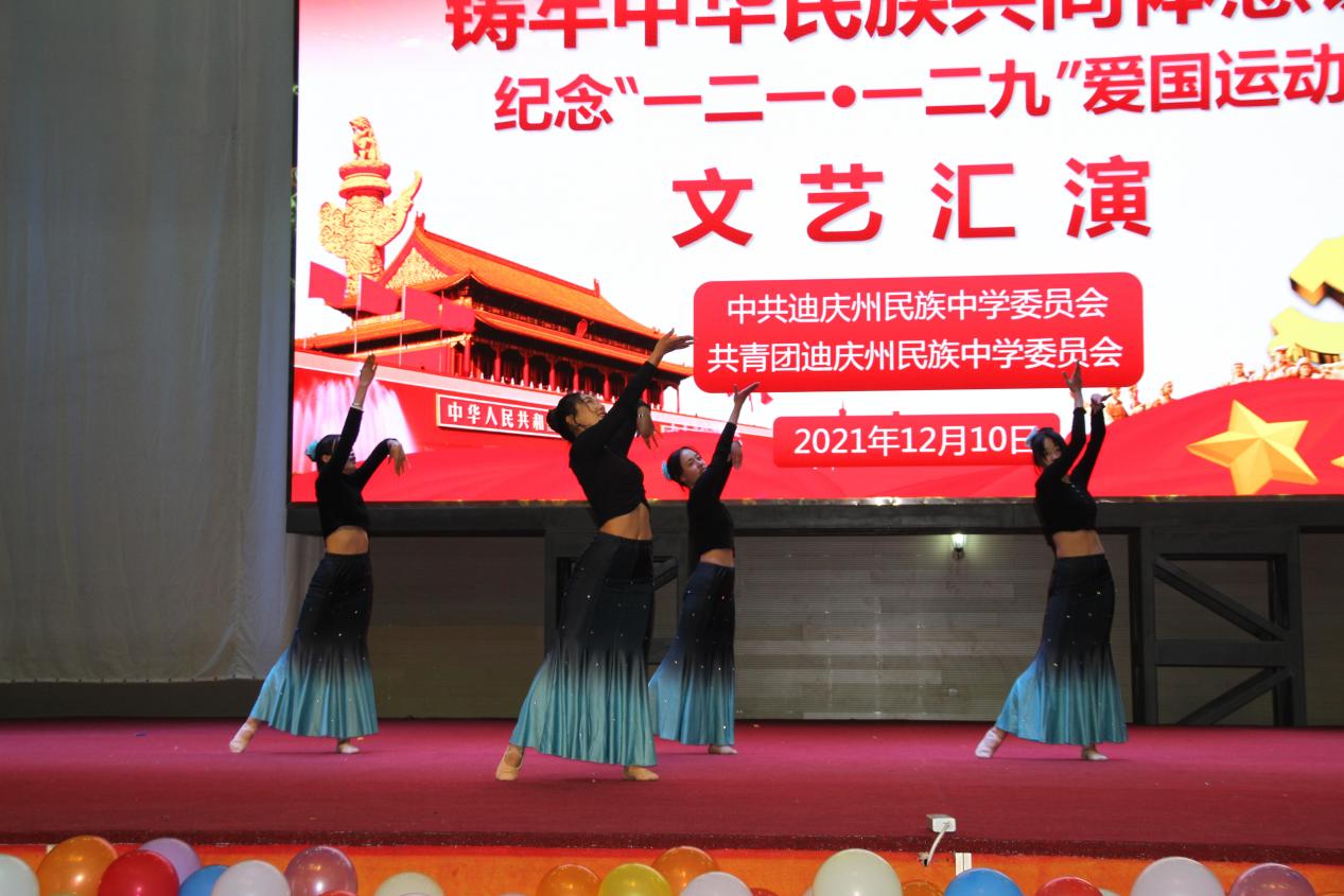 10日晚,高二年级组表演了精彩的文艺节目。235班带来的民族舞《军民一家亲》让我们一同回到人民解放军解放西藏时的革命岁月,一起感受那浓浓的军民鱼水情。神州大地繁花似锦,祖国长空长乐曲如潮,一百年见证了一个国家的繁荣昌盛,吾为中华天堑无涯,山河无恙,吾国万疆。高230班中国舞《万疆》以悠扬的歌声将古典意境与中国韵味表现得淋漓尽致......一曲曲动人的旋律,一首首熟悉的歌曲,唤起全校师生对那段峥嵘岁月的追忆,点燃了师生们浓浓的爱国热情,唱出了新时代中学生积极乐观、拼搏奋进的良好精神风貌,来自高一258班的曲目《大中国》和高二240班的民族舞《和谐迪庆,永念党恩》更是点燃了现场气氛将晚会推向高潮。