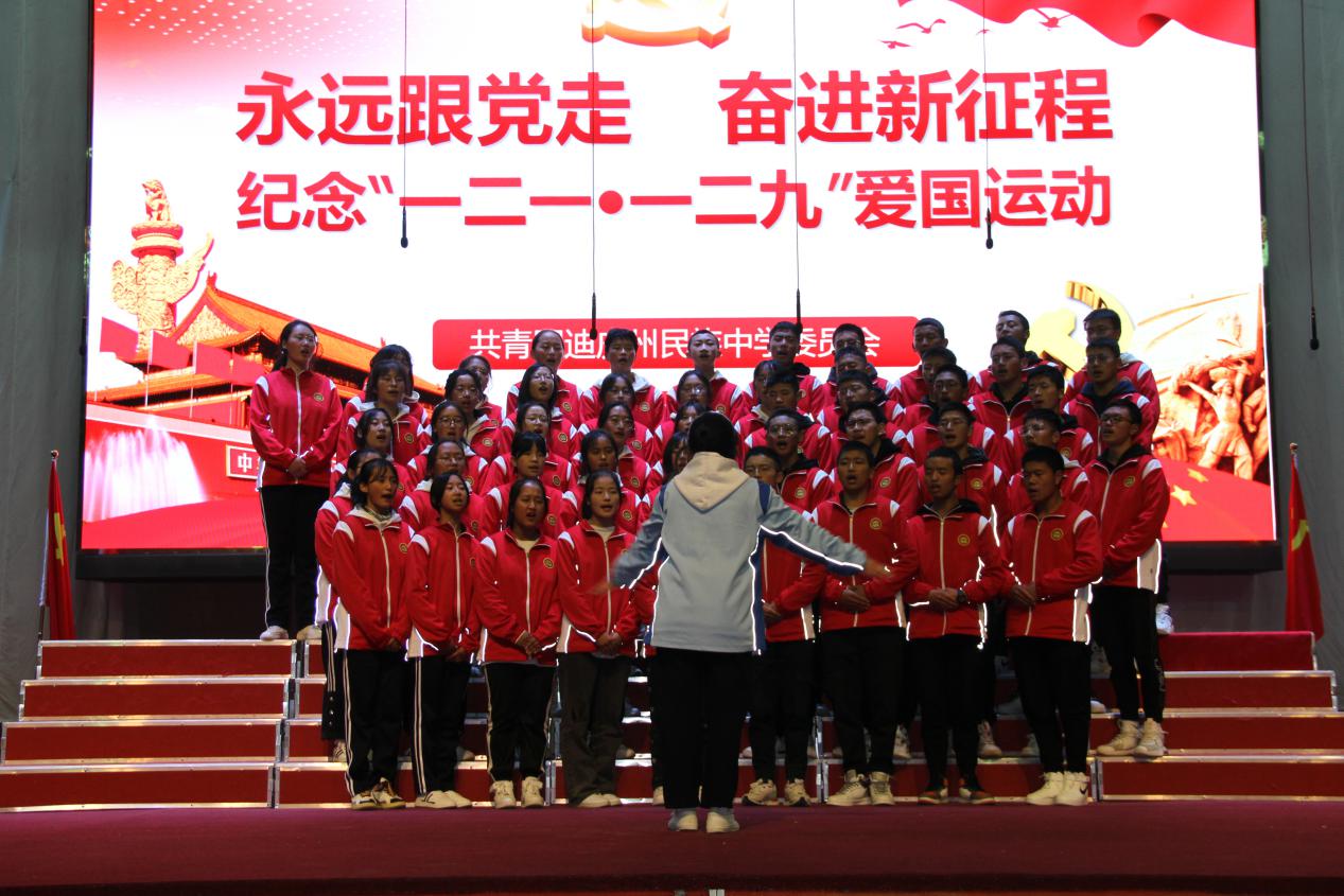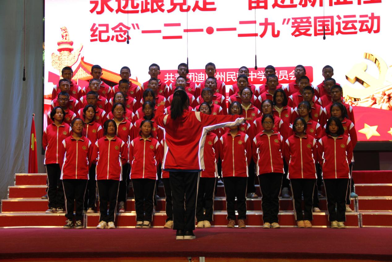 比赛开始前,校长和继福致辞,他希望同学们,以最美丽的笑容、最过人的胆识、最曼妙的舞姿、最精湛的演技、最真挚的情感、最羡煞旁人的朝气纪念“一二·一、一二·九”学生运动,赓续红色血脉,铸牢中华民族共同体意识。让我们共同凝聚在中华民族的旗帜下,像石榴子一样紧紧抱在一起,共同构成你中有我、我中有你、谁也离不开谁的中华民族命运共同体,以中华民族伟大复兴为己任,为创建民族团结示范区的标杆和世界的香格里拉而奋斗!为成为德智体美劳全面发展的社会主义建设者和接班人而奋斗!为实现中华民族伟大复兴的中国梦而奋斗!