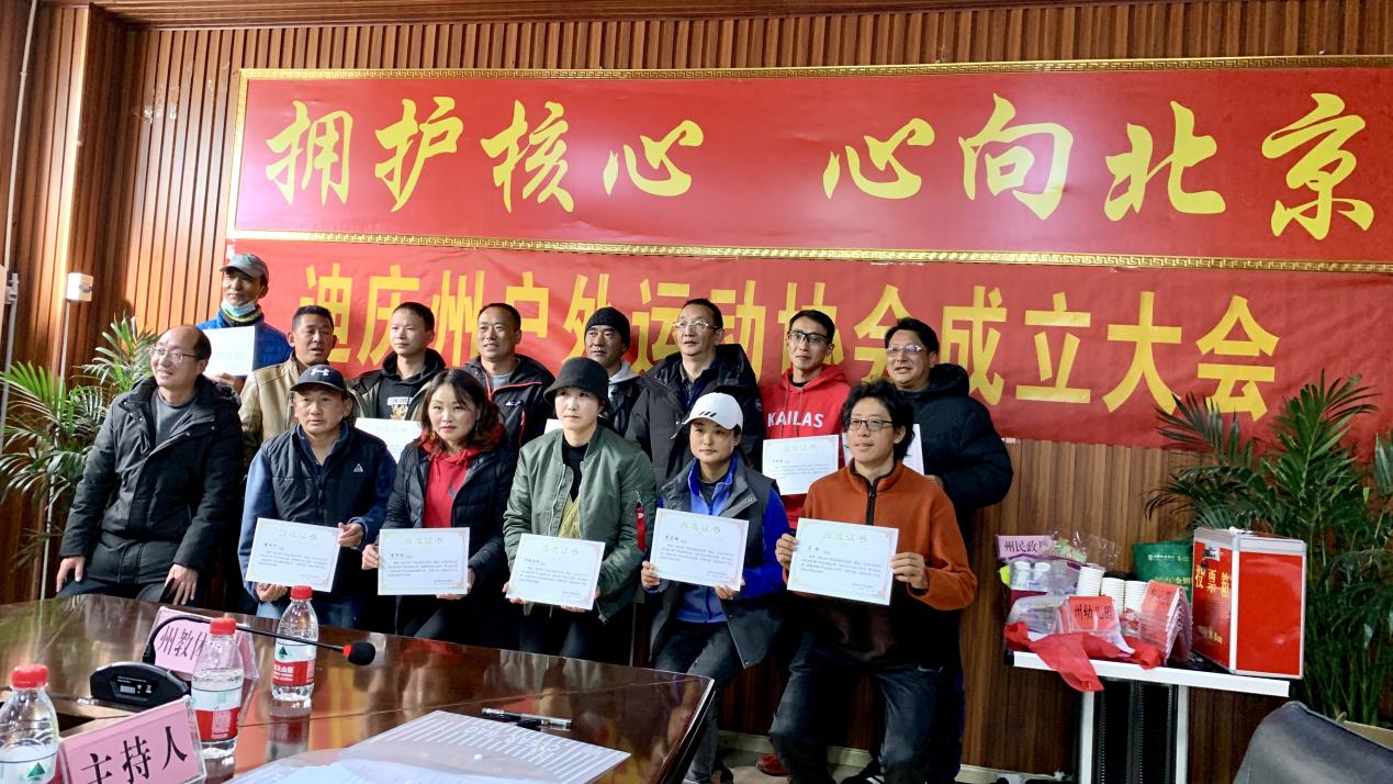 迪庆州户外运动协会在州教育体育局、州民政局的关心和指导下,召开了户外运动协会成立大会,大会宣读了迪庆州民政局关于同意成立迪庆州户外运动协会的批复,审议和表决通过了《迪庆州户外运动协会筹备工作报告》《迪庆州户外运动协会章程》《迪庆州户外运动协会会费标准及管理办法》;以无记名投票方式,选举产生了迪庆州户外运动协会第一届理事会理事12名。选举产生了第一届理事会和监事会领导班子。在成立大会上,州教体局党组成员、副局长、迪庆州体育总会主席孙建忠同志为州户外运动协会新一届领导班子颁发了当选证书、为迪庆州户外运动协会揭牌。