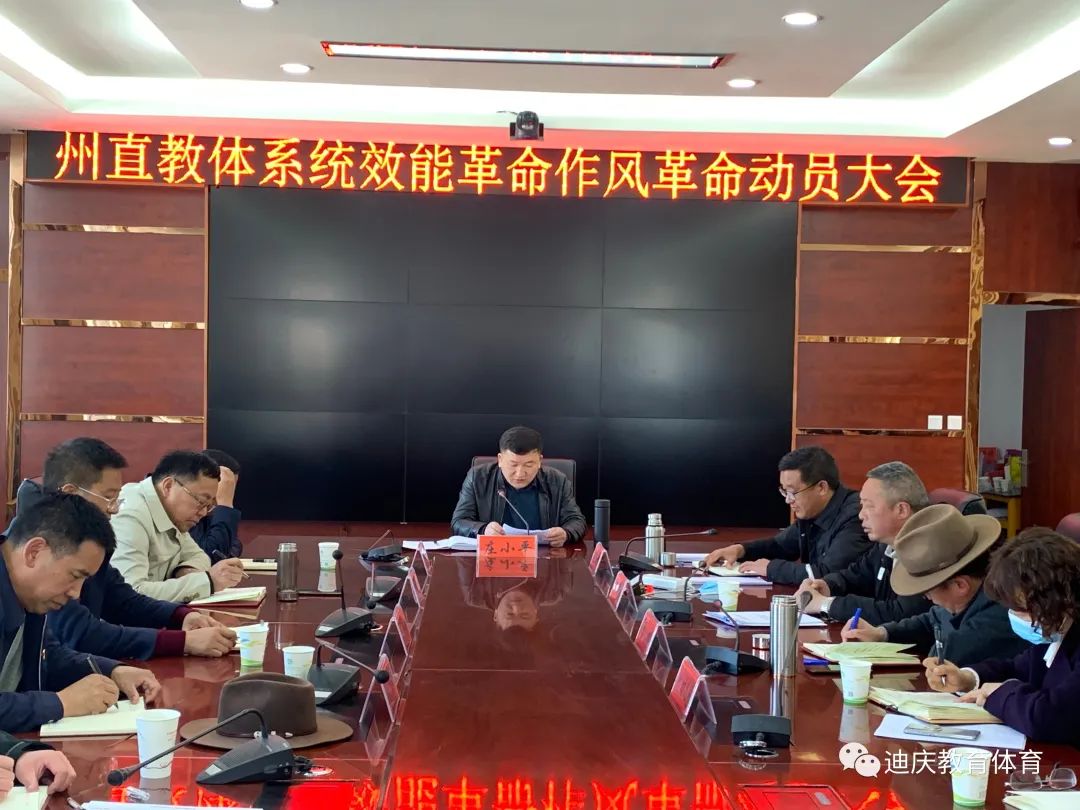 为认真贯彻落实云南省《推进作风革命加强机关效能建设的若干规定(试行)》和州委、州政府关于加强作风建设、推进效能革命的有关要求,4月22日上午,在州青少年活动中心会议室召开州直教体系统效能革命、作风革命动员大会,州教体局班子成员,州纪委监委驻州教体局纪检监察组组长李永红,州直各校校长、党办负责人,州教体局全局干部职工参加会议。