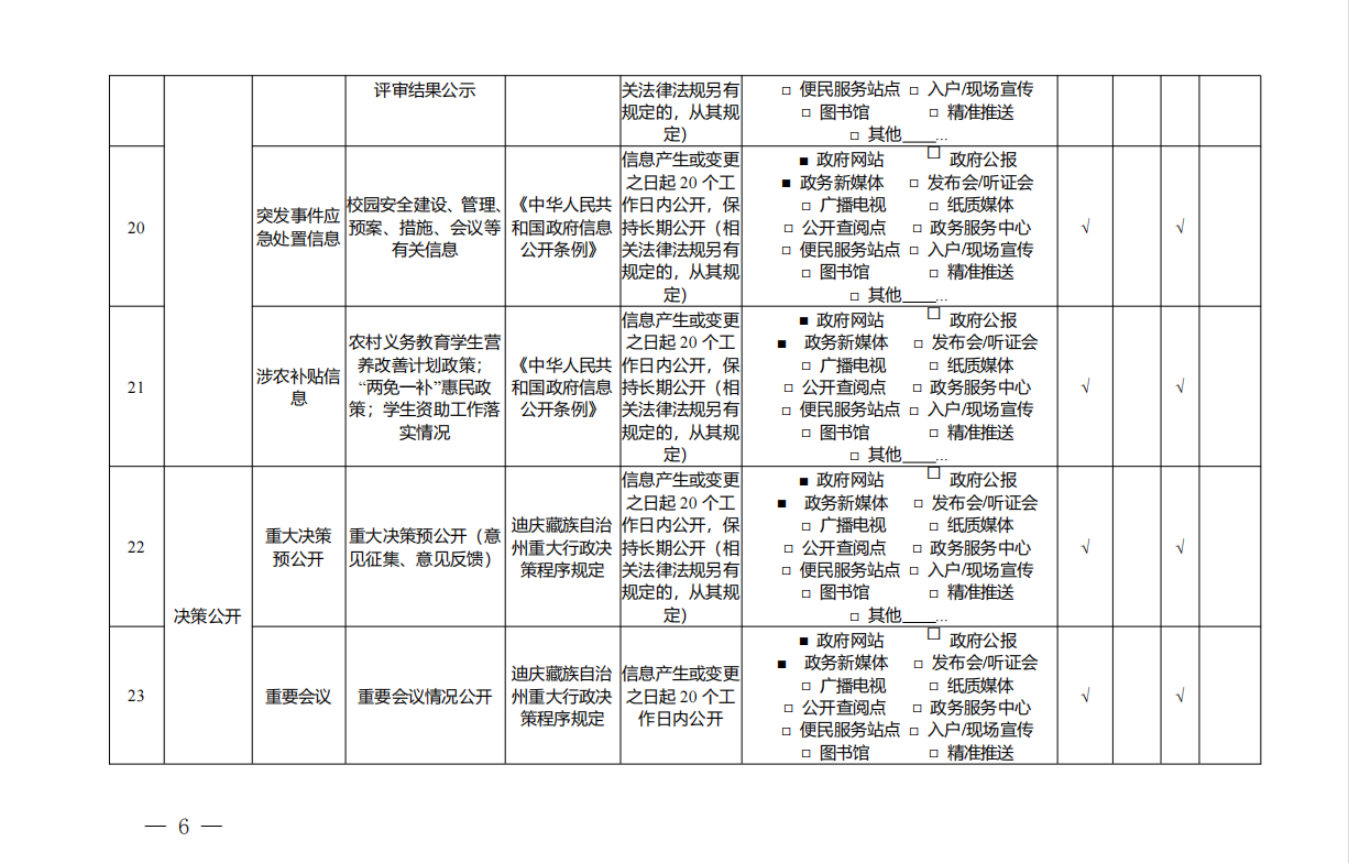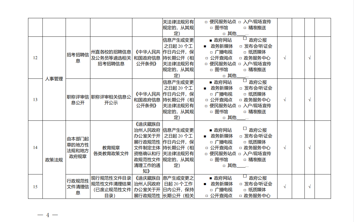 迪庆州教育体育局政府信息公开基本目录